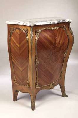 A Louis XV style mahogany and kingwood bombe cabinet,