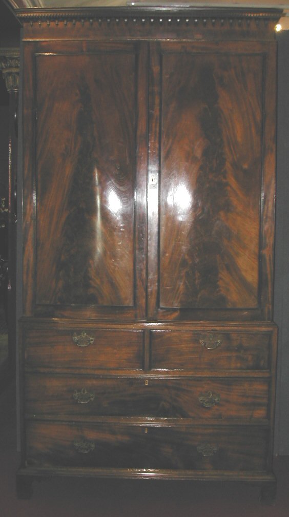 An early 19th century mahogany linen press,
