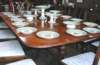 A Regency style mahogany and crossbanded three pedestal dining table,