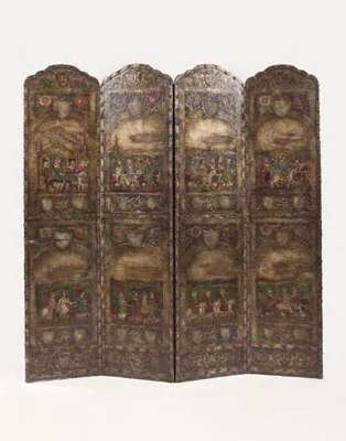 An embossed four fold draught screen,