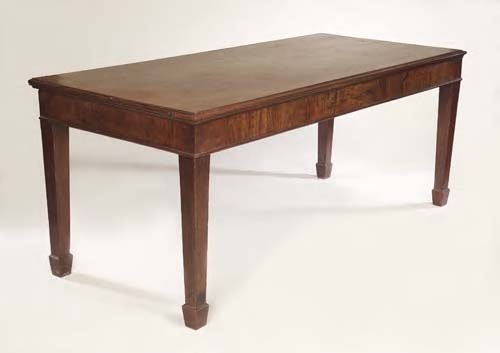 the rectangular top with moulded edge above a plain frieze with moulded beading, the whole raised on square tapering legs terminating in spade feet