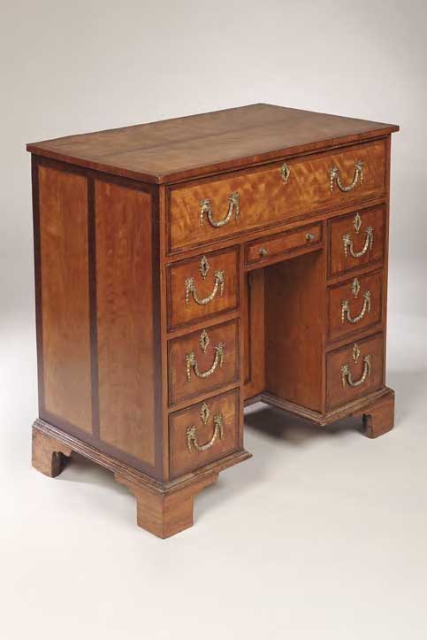 A satinwood kneehole secretaire desk,