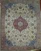 the cream field with wild animals, centred by a cusped rounded red medallion, within rose palmette, rosette and scrolling vine border between bands