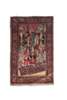 the field with various figures standing and seated, with rugs and vases in the foreground, within a crimson pictoral cartouche and scrolling vine border between bands