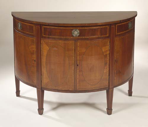 An Edwardian mahogany and crossbanded demi-lune cabinet,