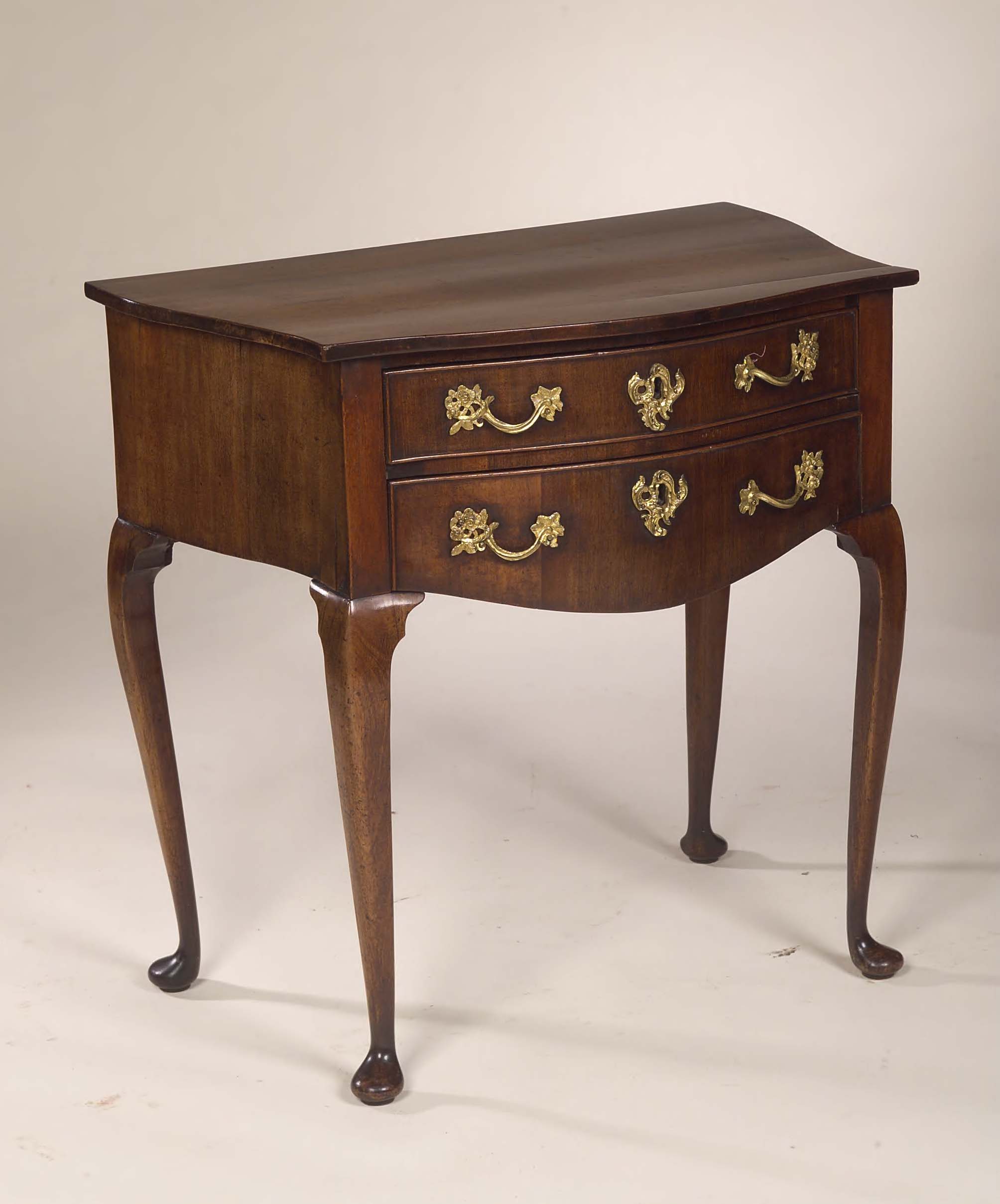 the shaped top above pair of drawers and cabriole legs with padded feet