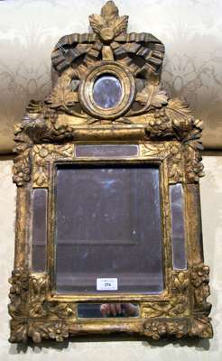 the ribbon tied cresting incorporating oval plate above rectangular plate with mirror borders to the frame, floral cast corners