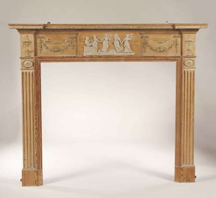 An Edinburgh George III pine and gesso fire surround,