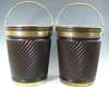 second half 20th century, each with spirally reeded and brass bound body, hinged twisted brass handle and brass liner (2)