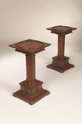each with square top with thumb rail rim raised on column on stepped square plinth