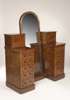 flanked by tiered pedestals, of eight graduated drawers with turned ebony and ivory handles, 140cm wide, 89cm high, 60cm deep; and a Victorian burr walnut chest of drawers (plinth lacking)(2)