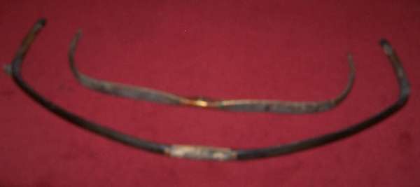 114cm long; and a similar lacquered bow, 82cm long (2)