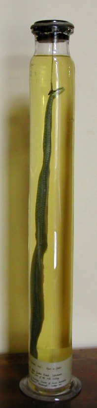 with a label stating: "Vipera berus ……Collected on the Milne Graden Estate in the latter half of the 19th century, Remounted by Dr. G Swinney ….. Curator ……. Royal Scottish Museum Edinburgh October 1993"