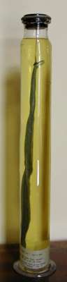 A 19th century tall glass specimen jar with an adder preserved in formaldehyde