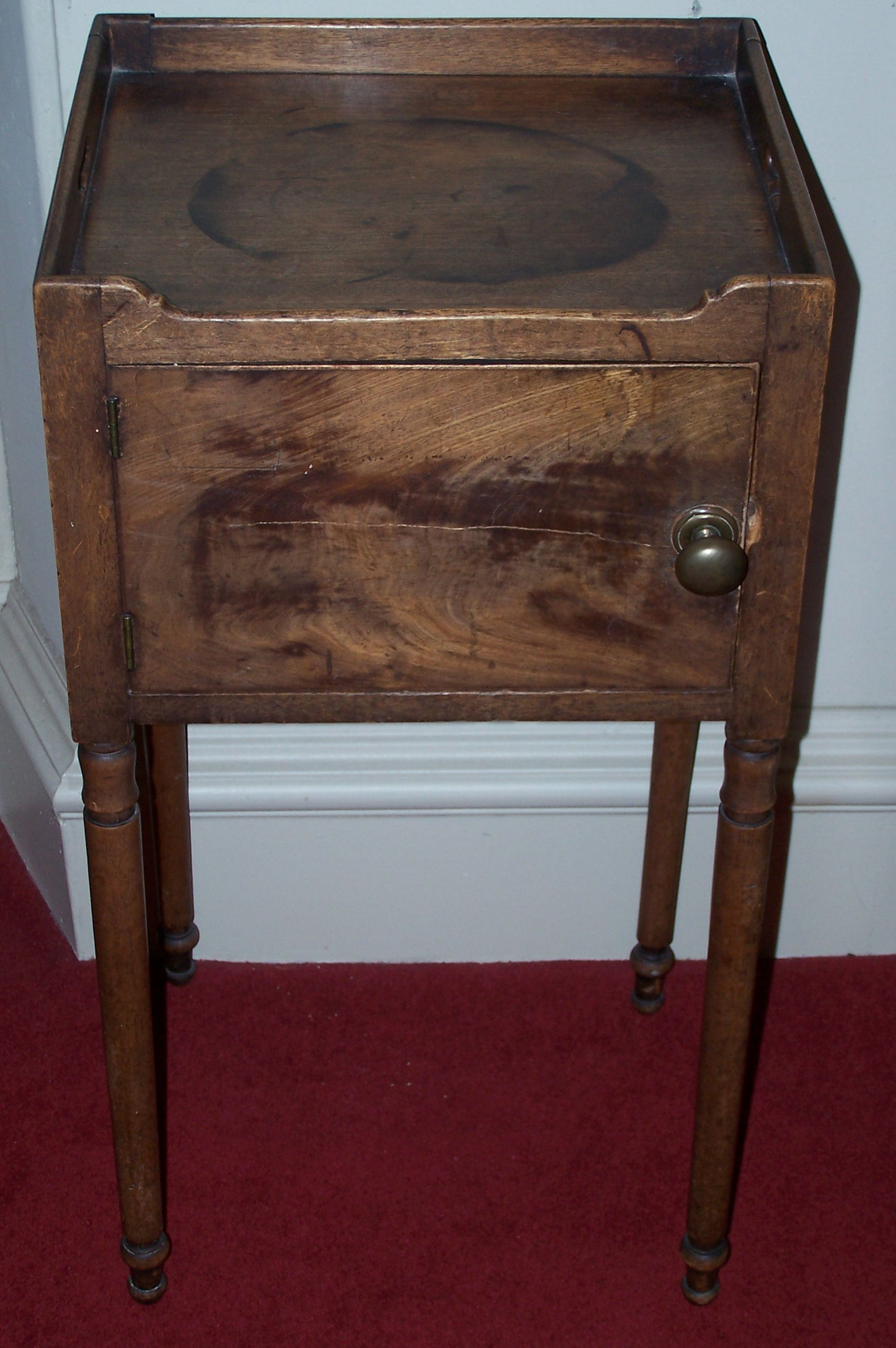 slight three quarter gallery, single door, ring turned legs (2)