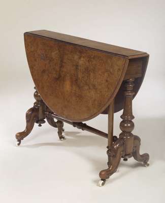 of oval form moulded edge, baluster column supports and turned legs, pot castors