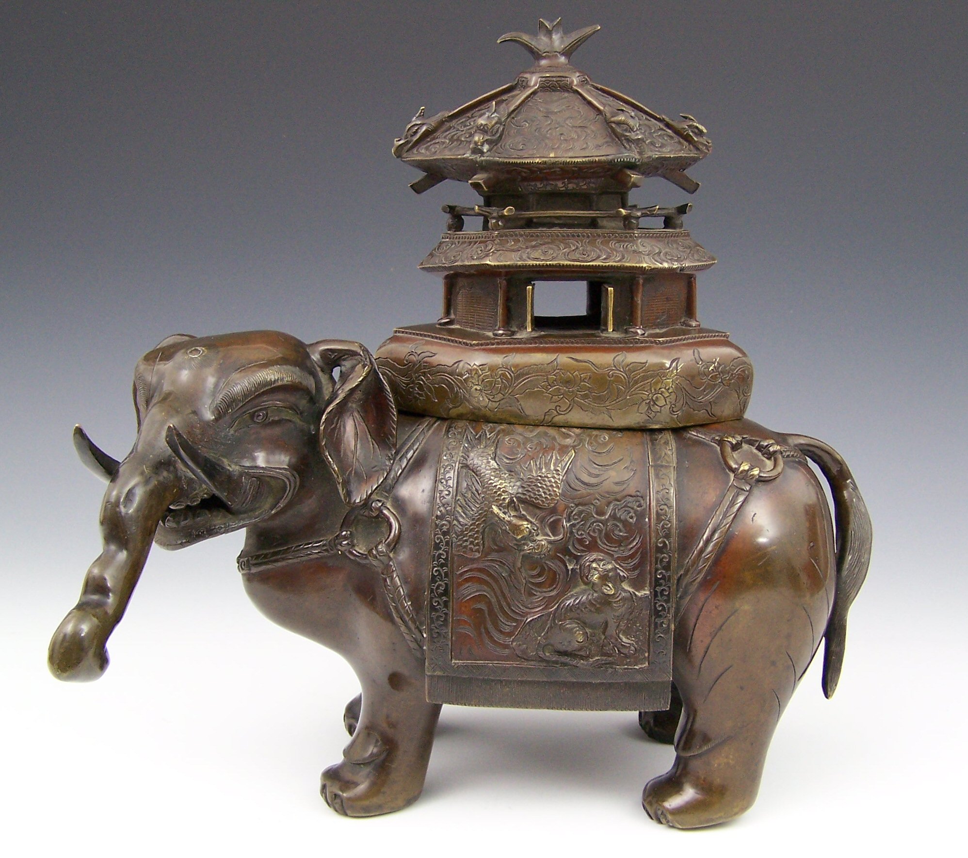 A 19th century Chinese bronze elephant form koro and cover, ALTERATION JAPANESE NOT CHINESE