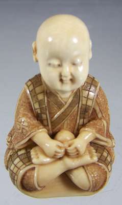 A Japanese ivory netsuke of a small boy, mid 19th century,