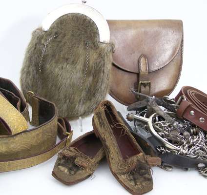 A collection of leather goods and accessories,