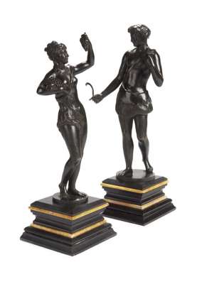A pair of late 19th century patinated bronze figures,