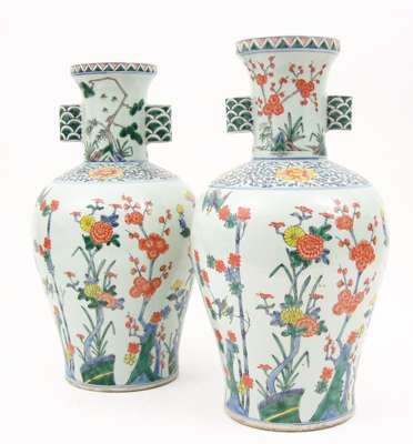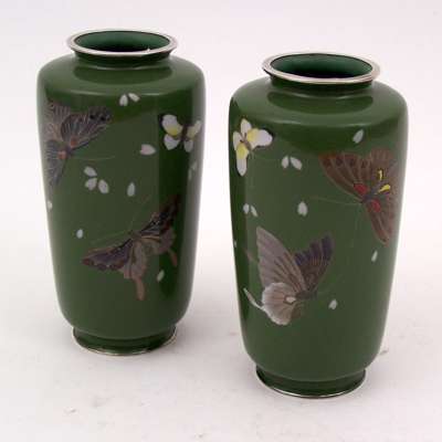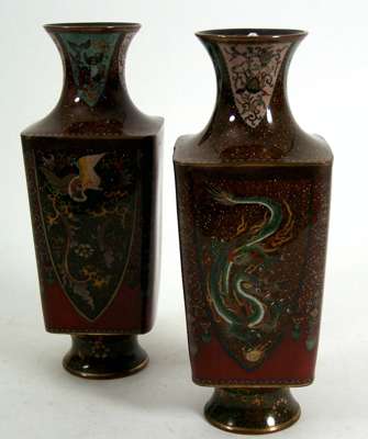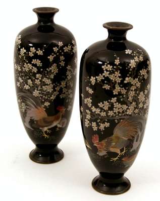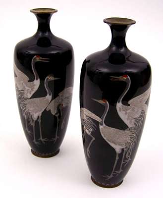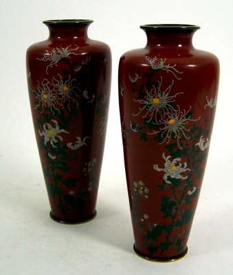 A pair of Japanese baluster shaped cloisonne vases,