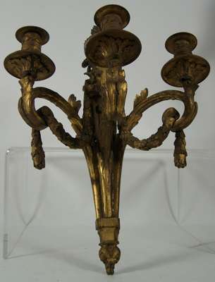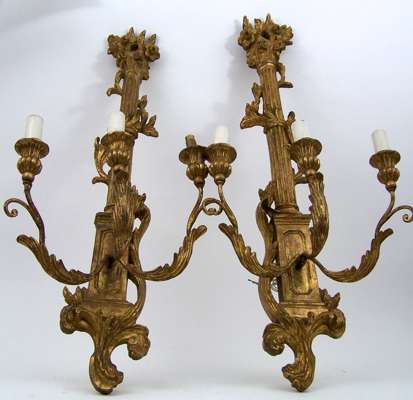A pair of giltwood three branch wall appliques,