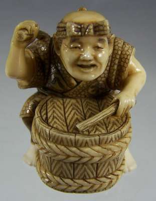 A Japanese ivory nestsuke of a drummer, Meiji period,