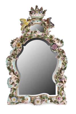 A 19th century German porcelain framed mirror,