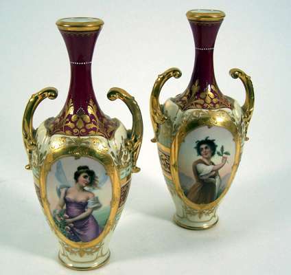 A pair of late 19th/early 20th century Vienna twin-handled vases,