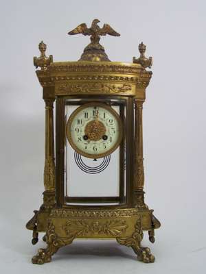 A late 19th/early 20th century giltmetal four glass mantel clock,