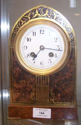 A burr walnut and brass inlaid Edwardian mantel clock,