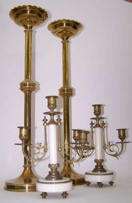 A pair of Gothic revival brass altar sticks,