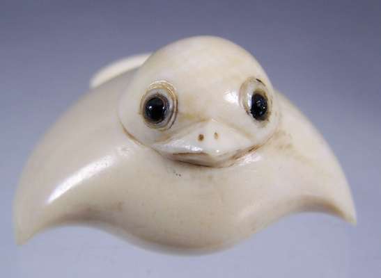 A Japanese ivory fukura suzume (puffed up sparrow),