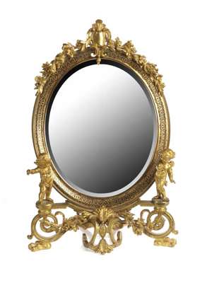 A late 19th century gilt brass dressing mirror,