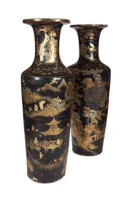 An unusually large pair of early 19th century papier mache and japanned vases,