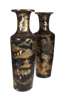 An unusually large pair of early 19th century papier mache and japanned vases,