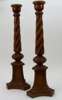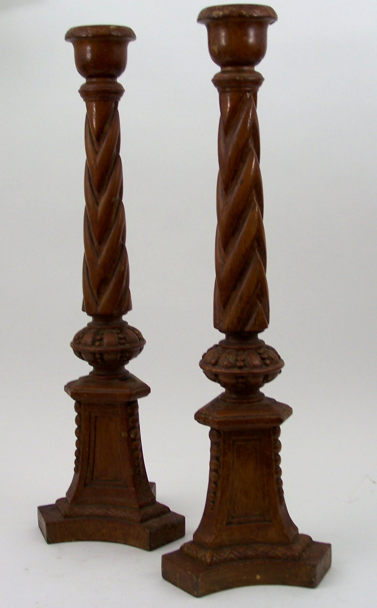 later decorated over gilt, the chevron carved stems above gadrooned buns and triform plinth bases