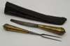with turned brass handles (minor corrosion and damage to blade tip) contained in contemporary black leather sheath