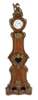 late 19th century, the twin train movement with circular white enamelled dial with Roman and Arabic chapters, enclosed within shaped hood, with cast and gilt metal figure of a seated Father Time, above parquetry inlaid shaped trunk with canted angles and central glazed aperture, the base with ogee outline, the whole with applied gilt brass mounts cast with foliate and figural motifs and raised on massive cast paw feet on a plinth