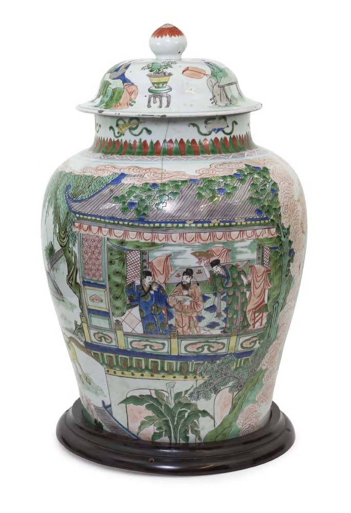 A large Chinese famille verte jar and cover, Kangxi,