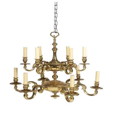 each with two graduated tiers of six scrolling branches, supported by a central turned and knopped column (2)