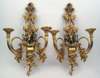 A pair of gilt brass two branch wall sconces,