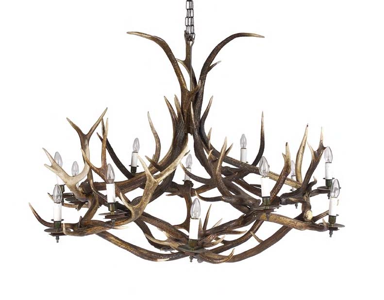 by Anthony Redmile, London, constructed from intertwined stag's antlers supporting twelve electrified sconces