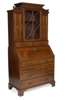 in the George III style, 20th century with 18th century elements, the stepped projecting cornice with dentil and blind fret frieze, above a central astragal glazed door, enclosing adjustable shelf, flanked by panelled doors, with two drawers below, the base with sloping fall, enclosing a fitted interior, above four long graduated drawers, on bracket feet (alterations)