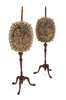 late 19th century, with cartouche-shaped 18th century needlework panels depicting Classical scenes, the baluster and vase-turned facetted stems ending in triple cabriole legs with pad feet (2)