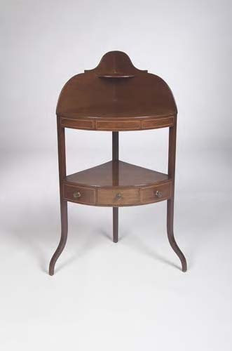 the upper tier with splash back and bowl apertures above a central drawer flanked by dummy drawers, on splayed legs with an undertier