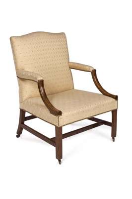 A George III mahogany and upholstered library armchair,