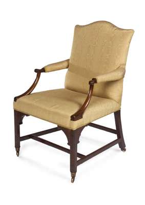 A George III mahogany and upholstered library armchair,