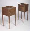 the rectangular galleried top with cut-out carrying handles, above a single door on square tapering legs, 39cm wide, 80cm high and another similar
