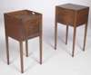 the rectangular galleried top with cut-out carrying handles, above a single door on square tapering legs, 37cm wide, 76cm high, also a George III mahogany and boxwood strung pot cupboard with serpentine front, the single door raised above square tapering legs